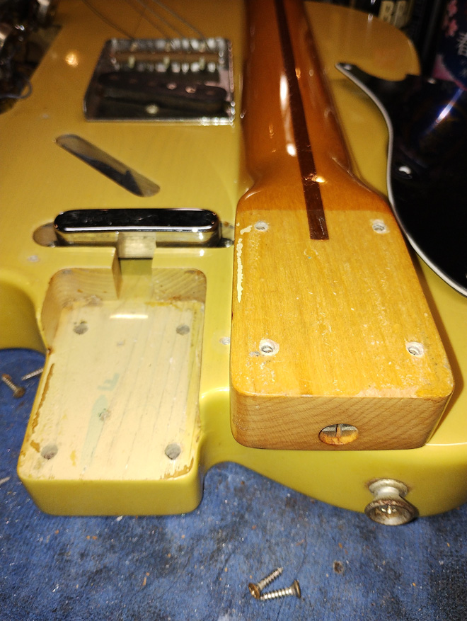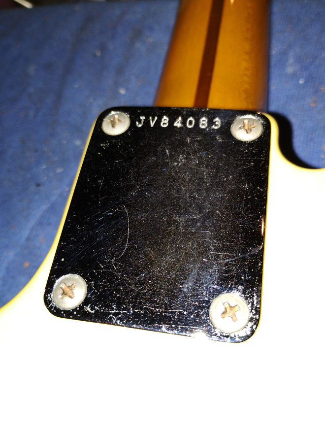 さーっぱりわからん。楽器店というプロがわからんのに、私がわかるわけないやん。それにしても、ネックポケットにもネックエンドにも一切の刻印がない(ん?ネックポケットには薄いF印がある?)時点で、そもそもフェンダージャパンじゃないって可能性が強まりますよね。made in japan表記も見当たらないし。要するにネックプレートだけ移植された謎のテレタイプなのか?そもそもギブソンなどと違ってカスタマイズの容易さがフェンダーの謎を生みますよね。でもだからこそ面白いとポジティブマインドになってしまうのが、フェンダーフリークのやばいところ。廃人はこの写真だけで酒が呑めると思います。(JMN統括編集長 烏丸)