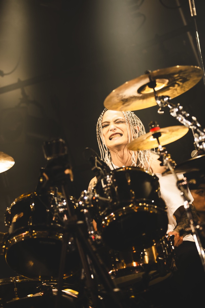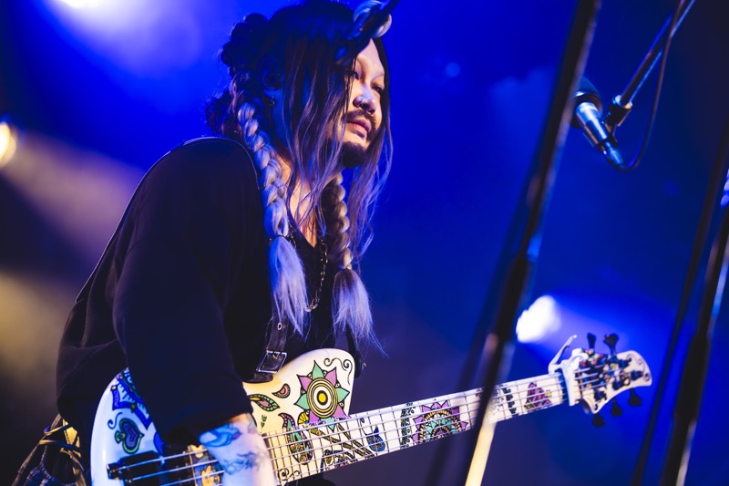 続いた「生活」でも各パートが独立して不穏な世界の輪郭をビルドアップしていくが、ノイジーなサウンドからソロへと変遷するMiyako(G)のフレーズはソリッドかつ味わい深く、実に見事だ。4thアルバム『black hole』収録の「御法度」も同様にソリッドであるにも関わらずオーディエンスは好反応。コロナ禍でエアポケットになっていた『black hole』の楽曲は、最新作『The Heart Tree』が持つ多彩さの予兆とも言えるかも知れない。