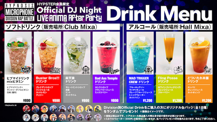 そして、この日限定でDivision別オフィシャルドリンクの販売も決定しており、ドリンク1杯購入ごとにオリジナル缶バッジのプレゼントも予定されている。