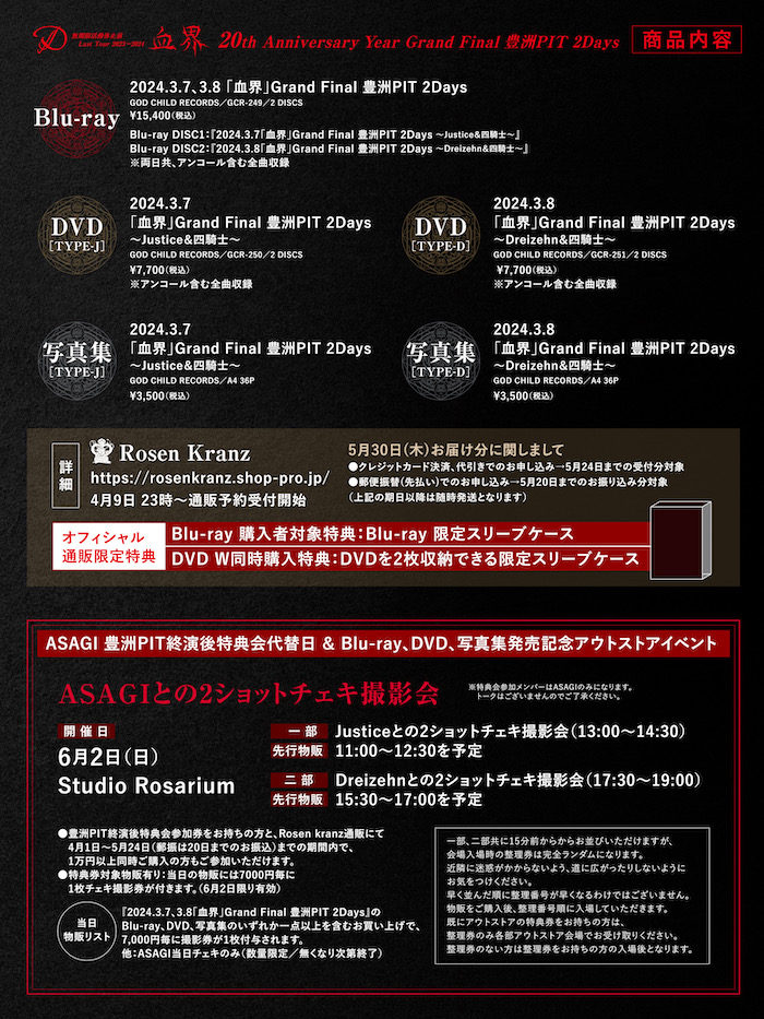 『2024.3.7、3.8「血界」Grand Final 豊洲PIT 2Days』のBlu-ray、DVD、写真集のいずれか一点以上を含むお買い上げで、7,000円毎に撮影券が1枚付与されます。