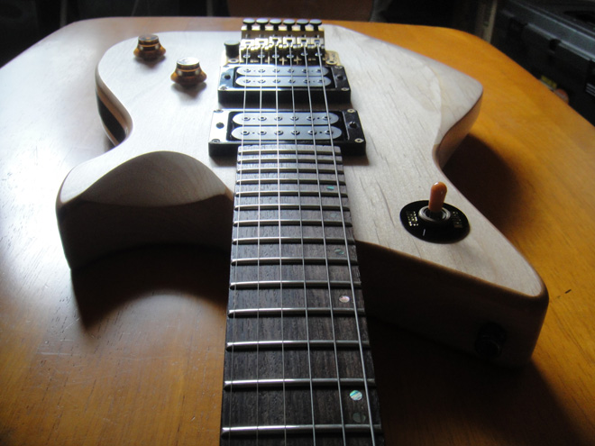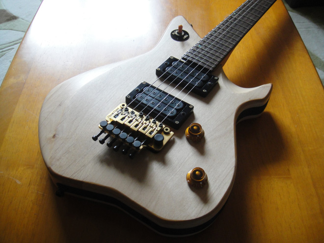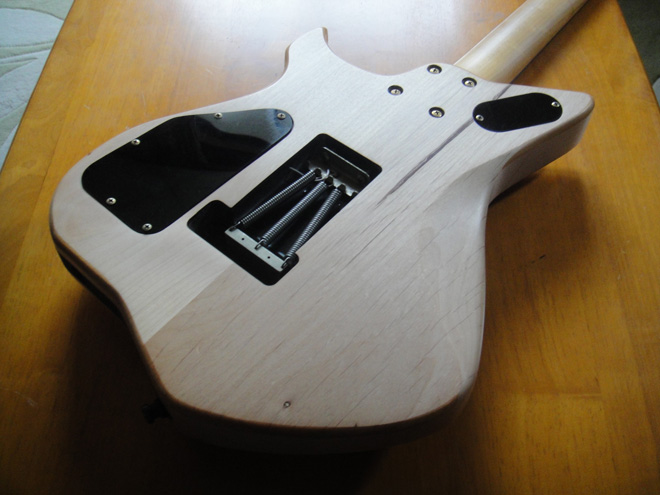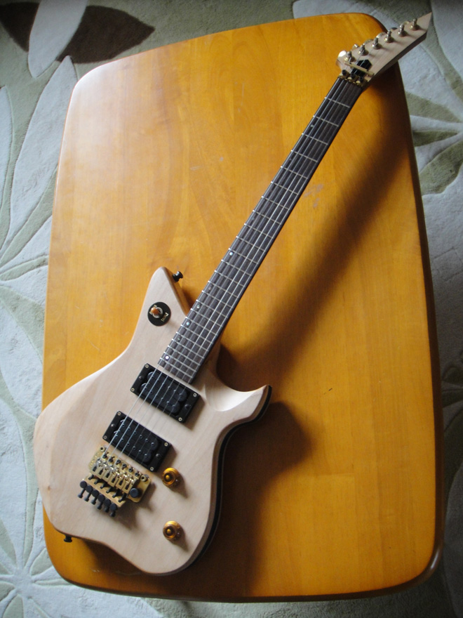 前回の投稿と見比べました。すっかり塗装も剥がれてすべすべお肌が気持ちよさそう。塗装はどうするのですか?無塗装って触り心地最高だけど、すぐ黒ずんで汚れちゃうから悩ましいものです。30年以上の年月をかけての完成に至ったとのことですが、バックのコンターが大きく変わっていますね。コンターカットというより3Dな立体的シェイプを持ったデザインに見えそう。30年経っても情熱の火が消えないというのが何より素敵なことなのよ。あれ、せっかくのオリジナルフロイド・ローズなのに、アームは使わないのでしょうか。でもブリッジにファインチューナーが付いていると考えるとそれはそれで機能的なんですよね。最後の塗装フィニッシュが完成したらまた投稿してください。(JMN統括編集長 烏丸)
