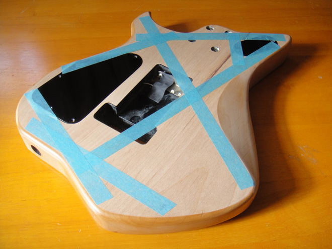 ※ボディサイドのテープはすべり止めとボディの形状をわかりやすくするため、PUなどに使う絶縁テープを貼っています。