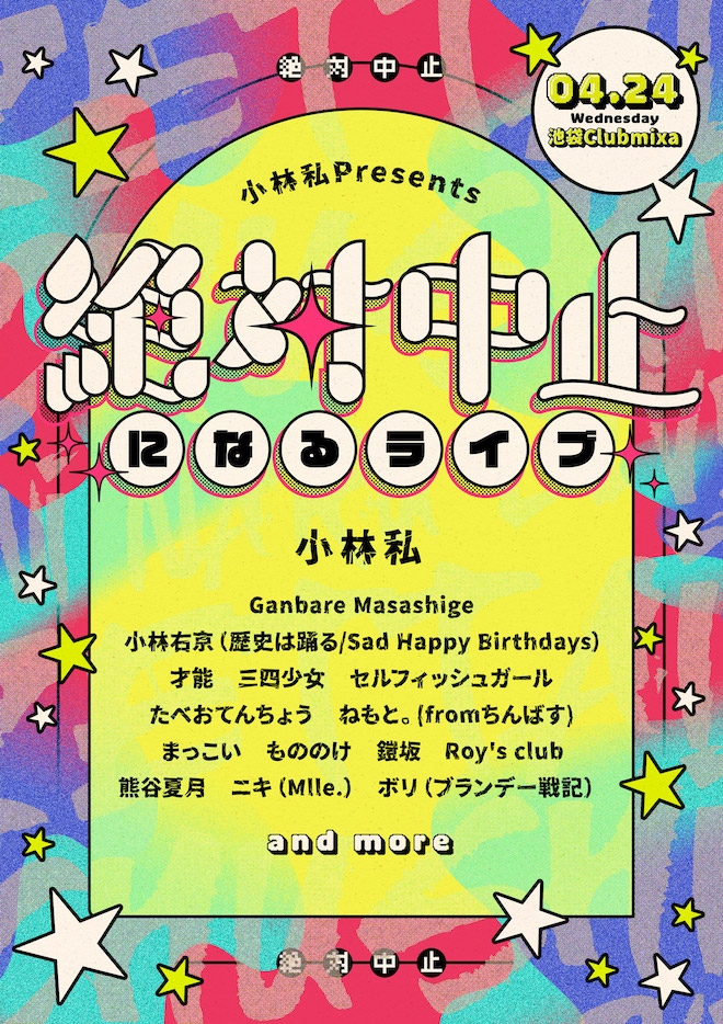 小林私主催イベントシリーズ第3弾<絶対中止になるライブ>の第2弾出演者を発表
