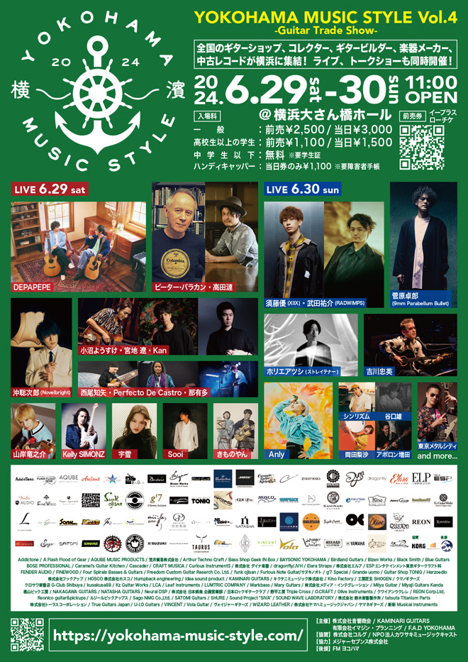 ギターをはじめとした楽器の展示・販売や、多彩なアーティストによるライブステージも楽しめる毎年恒例となった楽器・音楽イベント<YOKOHAMA MUSIC STYLE Vol.4>が、20204年も開催となる。例年通り、会場は横浜大さん橋ホール、今年は6月29日(土)30日(日)の二日間開催だ。