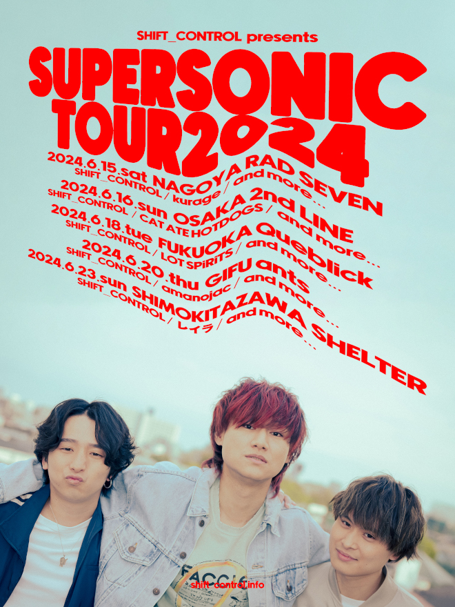 また、今作「HAYATE」のリリースをひっさげ、約1年ぶりの全国ツアー<SHIFT_CONTROL presents SUPERSONIC TOUR 2024>の開催を発表。ツアーは6月15日の名古屋公演を皮切りに、6月23日に下北沢SHELTERにてツアーファイナルを迎える。チケットは4月26日(金)10:00から発売となる。