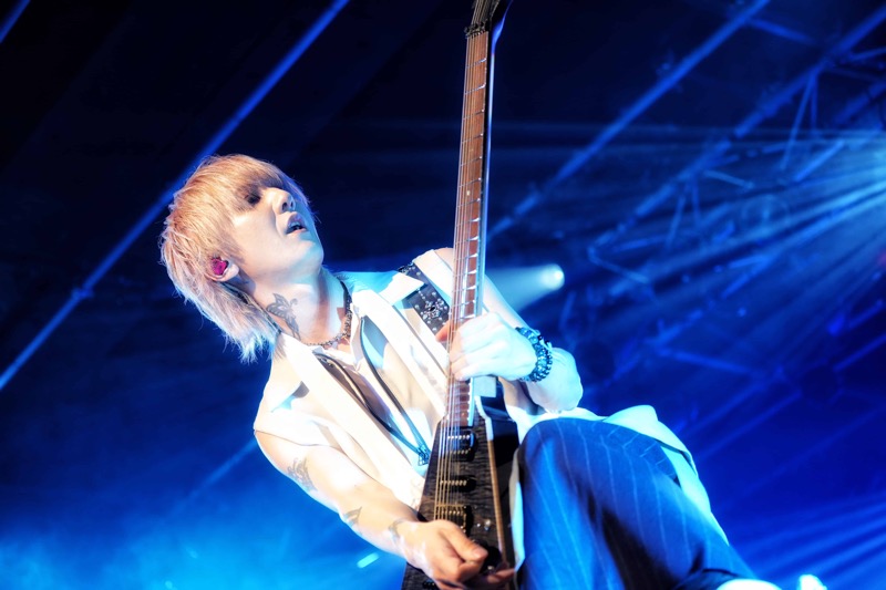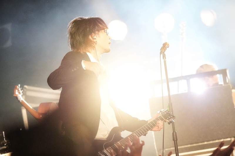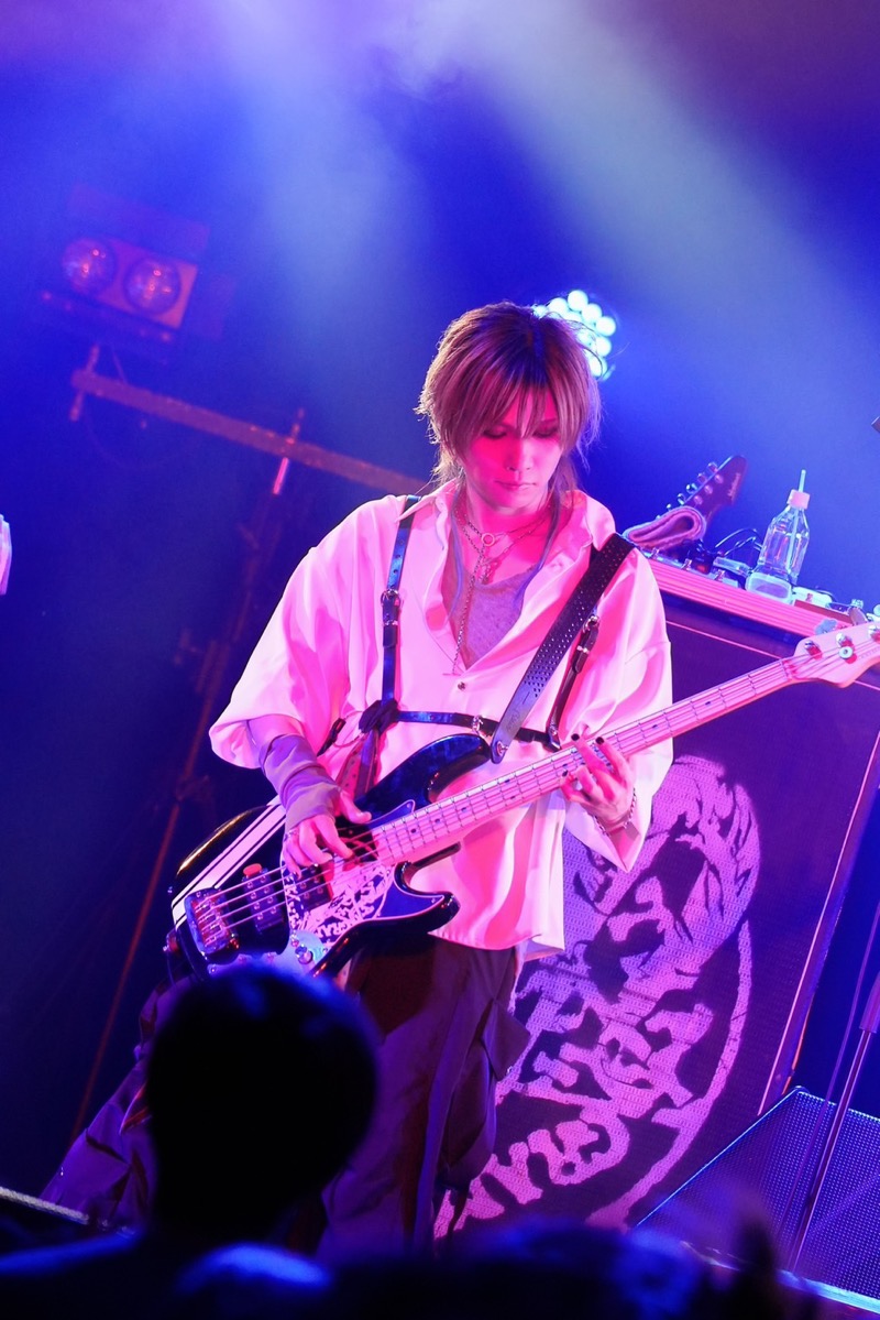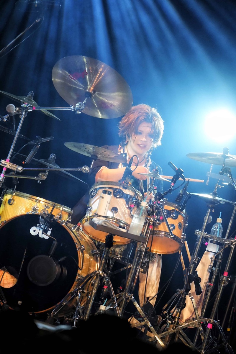 「『LAYOUT』ツアーのとき、「My Second B-day」でペダルが外れて、演奏中止したこともあった。あと昔、SHIBUYA BOXXでやった主催ライヴで「Dead Cherry」をミスって裏で大泣きしてた」と語った直後のトラブルに、“持ってるな~”と思ってしまったのは、ここだけの話。また、「そんな若い頃もありましたね」と語ったYuh(G)も「「LAYOUT」のアルペジオは緊張する」とのこと。フライングVタイプのギターを持ったアグレッシヴなスタイルはYuhの魅力だが、抒情的なギターソロも素晴らしく、例えばこの日の「REM SLEEP」のクリーントーンに思わず涙腺をやられたことも私事ながらお伝えしておきたい。