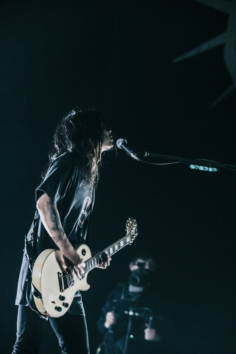 だからこそ聴き慣れた楽曲たちにも従来以上の説得力が感じられた。これまでライヴハウスでは各曲の等身大の姿と向き合ってきたわけだが、それらがアリーナ規模の会場にも似つかわしいスケール感を持ち合わせていることも伝わってきた。そして結局のところ、The BONEZの最大の武器は、4人のメンバーの人間力なのだと改めて実感させられた。確かにステージ背景に設えられた大型LEDスクリーンをはじめ、大規模会場に似つかわしいステージセットも組まれてはいたが、それはあくまでステージと客席との距離感を解消するためのものに過ぎず、過度な演出要素は皆無だったし、メンバーたちの呼吸が聞こえてくるかのようなリアルさはまったく損なわれていなかった。