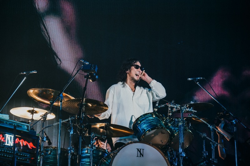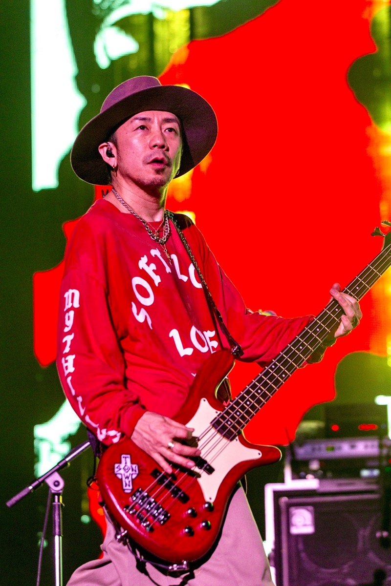 アーティスト自身の主宰によるフェス開催も目につく昨今ではあるが、<SUNTOWN>はそれとも趣を異にするものだ。なにしろ出演者はThe BONEZのみ。そして大規模会場ならではの広い空間を利用して、館内には通常の物販エリアばかりではなく、バンドと所縁のあるさまざまなブランドやショップのブースが設けられていた。そのひとつが一般社団法人SNOWBANKによる献血ブースで、その場で骨髄ドナー登録が行なわれていたことにも注目したい。こうした試みは決して唐突なものではなく、彼ら自身がごく身近なところにそれを必要とする人がいることを実感してきたからこそ実践されたことであるに違いない。たとえば彼らは以前からライヴ会場内にファミリー席エリアを設けてきたが、そうした取り組みも、彼ら自身が父親目線を持ちながらファンのニーズを把握し、ライヴは危ないから観に行けないという子供たち、子供連れだからライヴには行けないという親たちにも諦めて欲しくないという想いを抱いているからこそのもの。こんな事実ひとつにも、彼らの寛容さと包容力を感じずにはいられない。