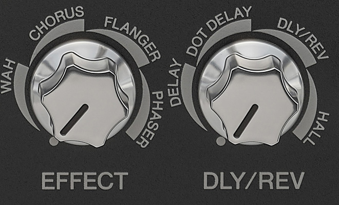 エフェクトには新たにワウを搭載したほか、本体のノブで操作できるエフェクトとしてコーラス、フランジャー、フェイザーを、ディレイとリバーブの操作ノブにはドットディレイ、ディレイ/リバーブ、ホールリバーブを用意しました。さらに専用アプリには、本製品だけで使用できるデチューン、ハーモニーやルームリバーブ、スプリングリバーブといったエフェクトを用意。特別なエフェクトが演奏の楽しさを広げます。