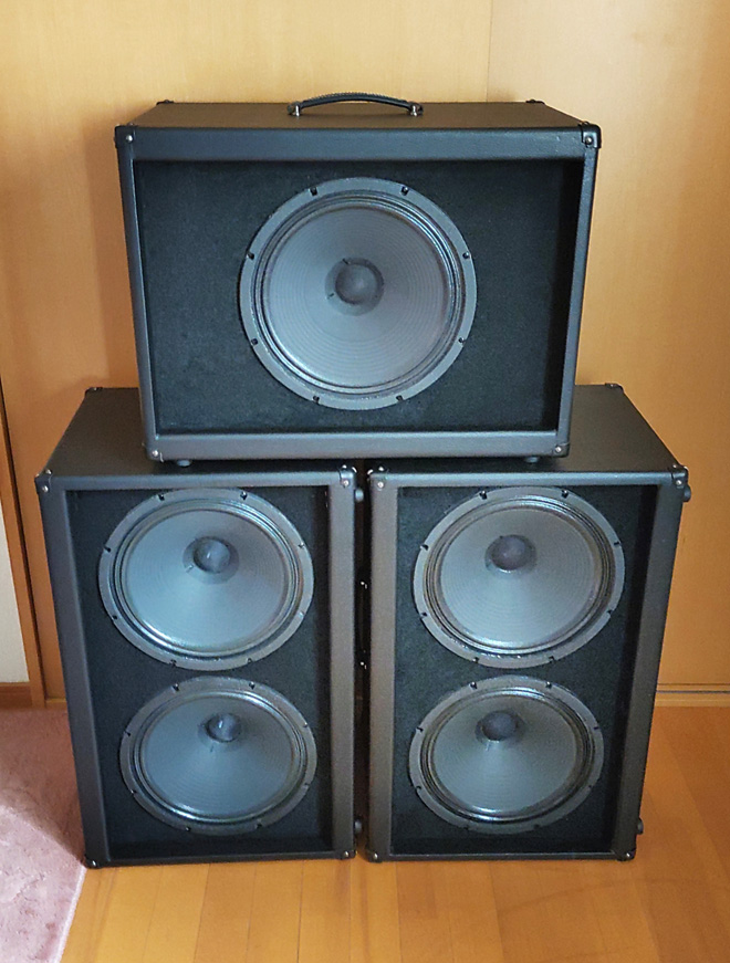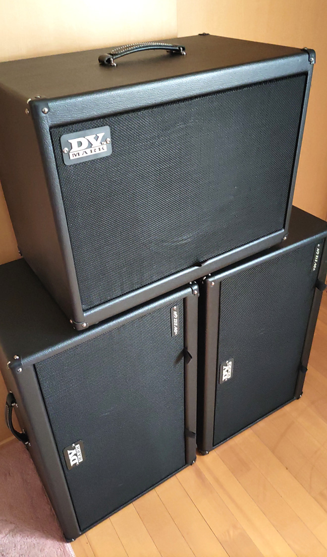 そこからDV MARKキャビの沼にはまり、4発キャビであるC412 Standardを購入したりしてましたが、引っ越しの際に手放し、重量11.1kgのDV 112 PLUSという1発キャビに一旦乗り換えました。これでも出力150Wと十分すぎるスペックでしたが、やはり2発キャビの見た目が好きなのでDV 212 GHを追加で買い直し、ついでにもう1台同じ2発の物を買い、現在3台、計5発所有しています。引っ越し先でも音量を気にしながら鳴らしています。