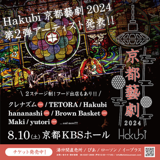 Hakubiが8月10日に開催を発表した<京都藝劇2024>の第二弾出演アーティストを発表した。