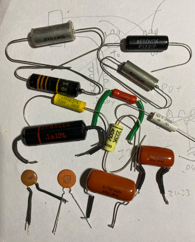 で~コンデンサーでこうやって遊んで見ると、見た目の違いや、付けたぞ!とのプラシーボ等々有りますが、、エレキは電気~回路に挟む部品で音は変わるよなぁという事で私個人的には落ち着いたという事でご報告させていただきたいです♪~