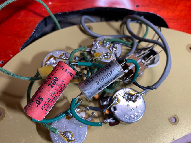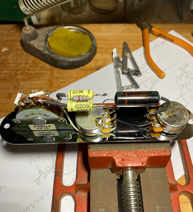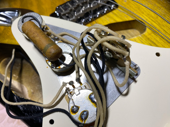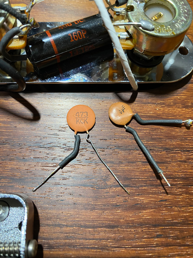 そこで、編集長~コンデンサーで遊んでましたら、以前から1pick upの清々しく漢らしいレスポールJrとエクスワイヤーに悶々としていたので、コンデンサーで遊ぶならエクスワイヤー。手持ちのコンデンサーでテレキャスをエクスワイヤー化しようと着々と進めてます!