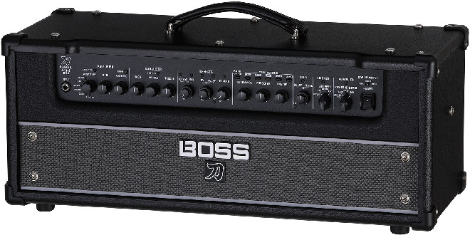 100Wの出力を備えるフラッグシップ・ヘッド・アンプ。3つの「SPEAKER OUT」が用意され、幅広いキャビネットとの接続に対応。特にBOSSのスピーカー・キャビネット『KATANA CABINET 212 WAZA』とは理想のコンビネーションを実現し、フラッグシップにふさわしい迫力あるサウンドをもたらす。