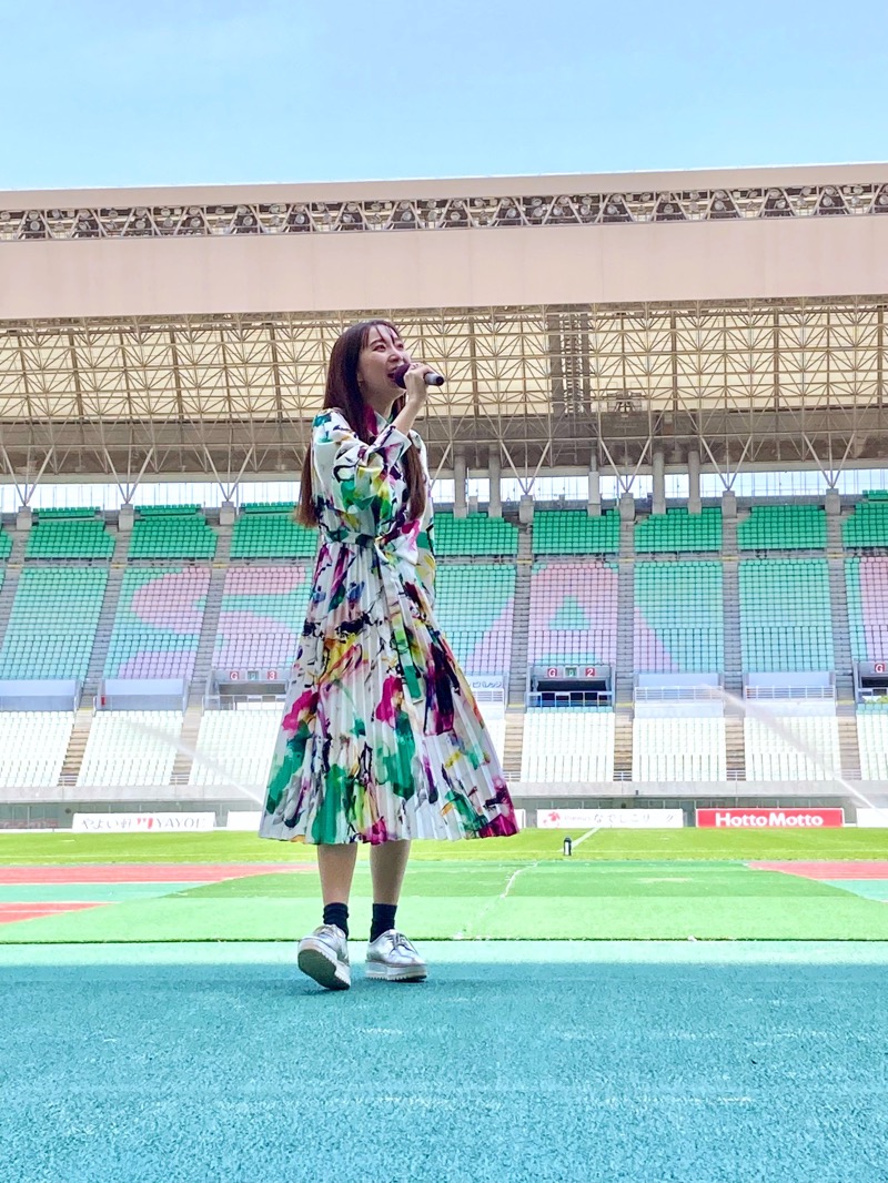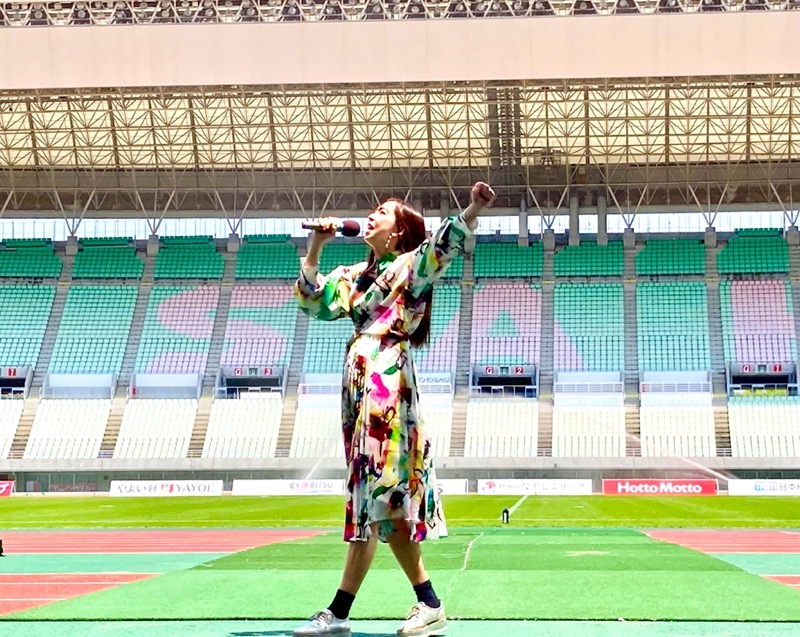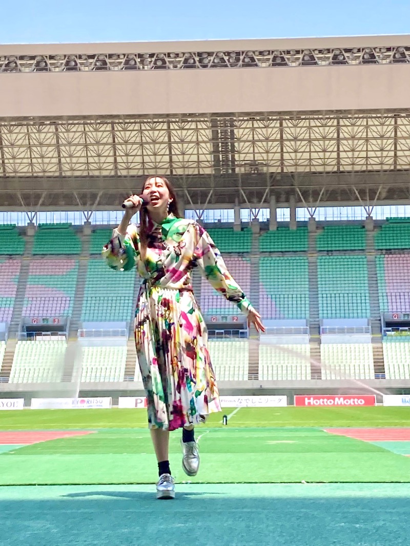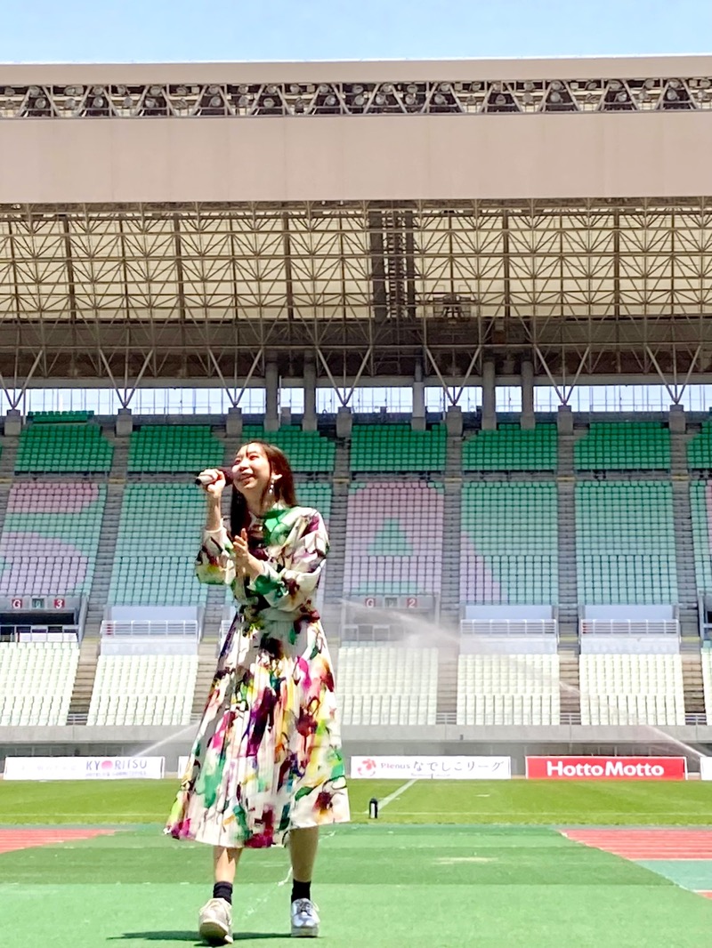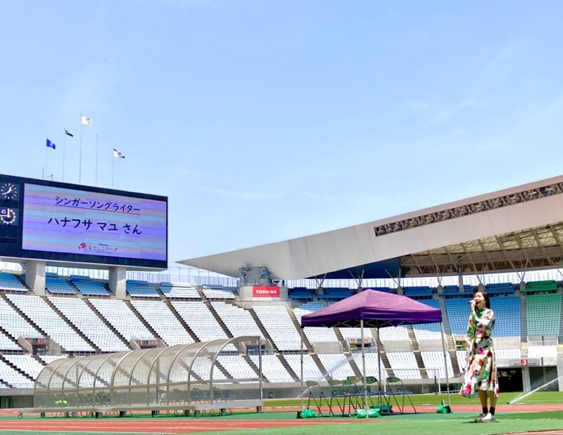 ハナフサマユ、ヤンマースタジアム長居でなでしこリーグ試合前に新曲歌唱