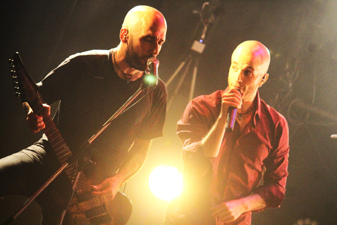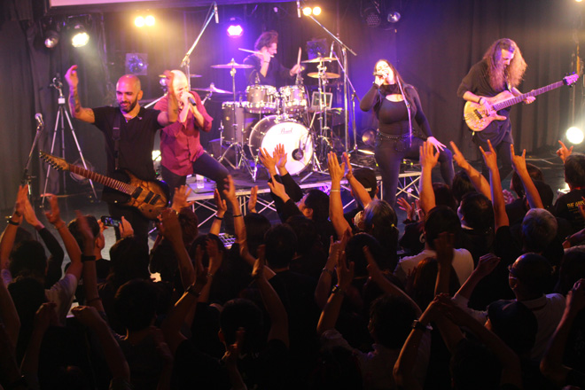 そうした2組の熱演を経て、満を持してテンペランスが登場。実のところ今回の日本上陸は、バンド側にとってはやや不本意な形にならざるを得なかった。フロントマンであるミケーレ・グアイトリが他のツアー出演との兼ね合いにより来られなくなったのだ。その事実、そして彼の代役として最新アルバムにもゲスト・ヴォーカリストのひとりとして参加しているガブリエレ・コッツィが参加することについては、事前に招聘元からも公表されていた。とはいえこのバンドの最大の特色といえば男女混成のトリプル・ヴォーカルであるだけに、来場者の多くもミケーレの不在について少なからず不安をおぼえていたことだろう。