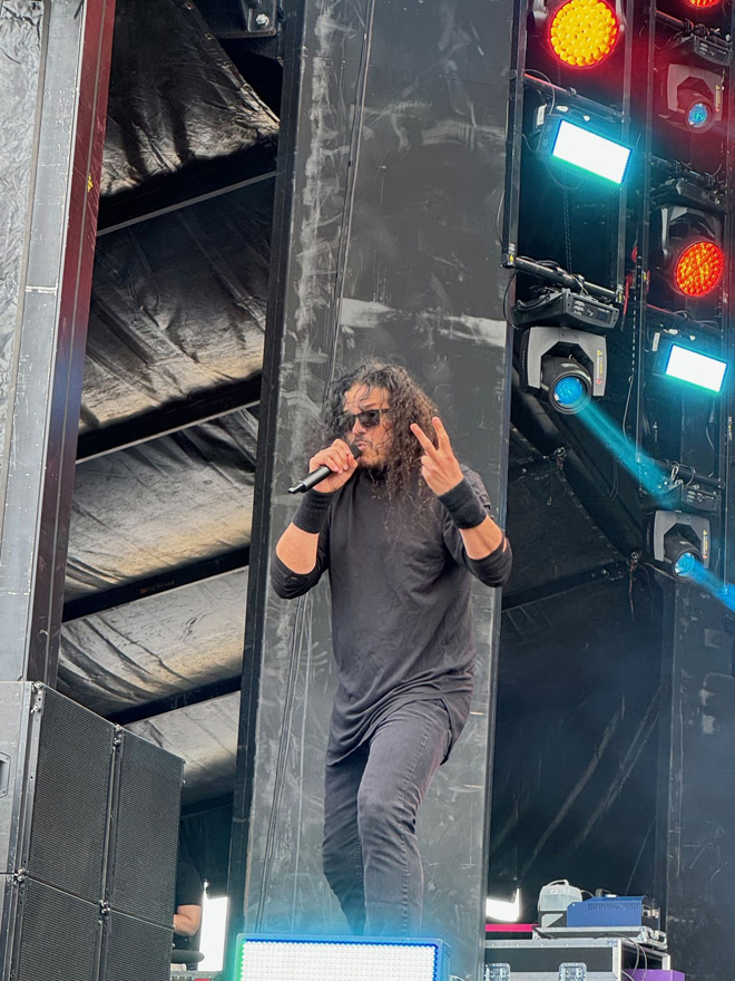 翌日のヘッドライナーであったジャーニーにも一時在籍していたジェフは、バックステージで現シンガーのアーネル・ピネダ(Vo)とも交流していたようだ。