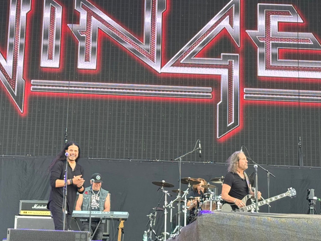 そして、同日の夕方に出演したウィンガーでもサプライズの場面あり。ウィンガーは昨年の日本公演同様にジョン・ロス(G)の代役でハウイー・サイモン(G)が参加。ハウイーは後期タリスマンのメンバーでもある事からなのか、キップ・ウィンガー(Vo, B)がステージにジェフを呼び込み、「Miles Away」を一緒に披露してくれた。