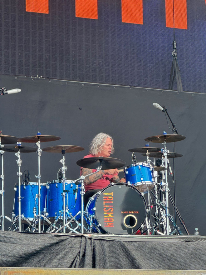 フェスティバル初日のお昼、タリスマンのロゴ入りのドラムセットが見えただけで感動モノで、開演前からそのステージに詰めかけたオーディエンスが「I’ll Be Waiting」のサビ部分を合唱し始める。当時からこの曲はとにかく母国スウェーデンでも大人気で、これをみんなで歌う事がお約束になっているようなところがある。