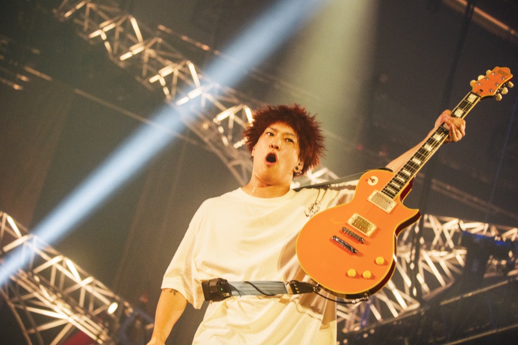 この日は「サタニックカーニバル、行けるかー!」とRYU-TA(G,Cho)が、「一緒に行ける?」とGENが呼びかけて鮮烈なギターリフで観客も大歓声を上げた「fiction」から間髪入れずの4タテ。どっしりとしながらもしなやかにグッドメロディーを響かせ、乗り遅れるなと言わんばかりに「fade」を放ち、キラーチューン「monolith」、RYU-TAのダミ声も絶妙なアクセントになっている「knife」と矢継ぎ早に繰り出していく。ここに集まった観客にできないわけがない、という信頼があるのだろう。GEN、RYU-TA、HIROKAZ(G)のフロント陣は己に活を入れるように前のめりになり、KOUHEI(Dr,Cho)もそのノリを支えながら後押し。まだまだ行くんだという気概がみなぎっているのだ。