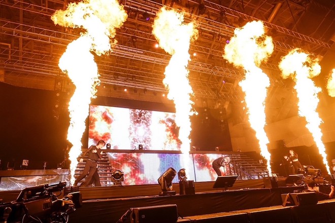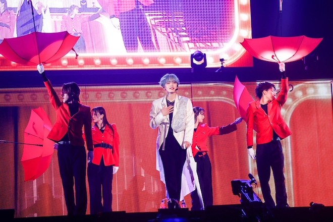 「Lightning」「DeeDooDah」「曼荼羅」とレーザーやファイヤーボールなど派手な演出と共に勢いよくライブはスタートした。「Photogenic」では楽曲そのままのイメージ通り会場が写真スタジオに一変し、「S.W.I.N.G」「孤狼」ではストーリー仕立ての演出で会場はさながら演劇の舞台の様に。