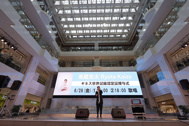 海蔵亮太が、メジャーデビュー6周年と前人未到となる「記録名:音楽アーティストによるデジタルシングルの連続リリース最多週数(Most consecutive weeks to release an original digital single by a music act)」の達成を記念して、池袋サンシャインシティ噴水広場にてギネス世界記録™公式認定証授与式イベントを開催した。