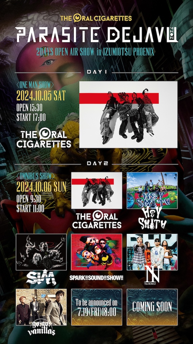 THE ORAL CIGARETTESが10月5日・6日に大阪・泉大津フェニックスにて開催する主催イベント<PARASITE DEJAVU 2024 〜2DAYS OPEN AIR SHOW in IZUMIOTSU PHOENIX〜>にて、オムニバス形式のイベントとして開催されるDAY2の第五弾出演者としてgo!go!vanillasの出演が発表となった。