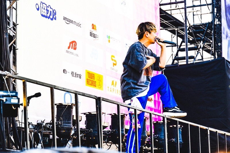 「京都大作戦が大好きで、10-FEETが好きだってヤツ!」とか「俺はターバンして前が見えないって言われてるけど、けっこう見えてます。京都大作戦、嵐を起こせ!」など次から次へとノンストップで言葉を畳みかけ、目の前のオーディエンスを一人残らず頼もしく引っ張っていく。太陽が丘を埋めつくすオーディエンスは激しく揺れ、振り回す色とりどりのタオルがカラフルな大海原を作り出した。