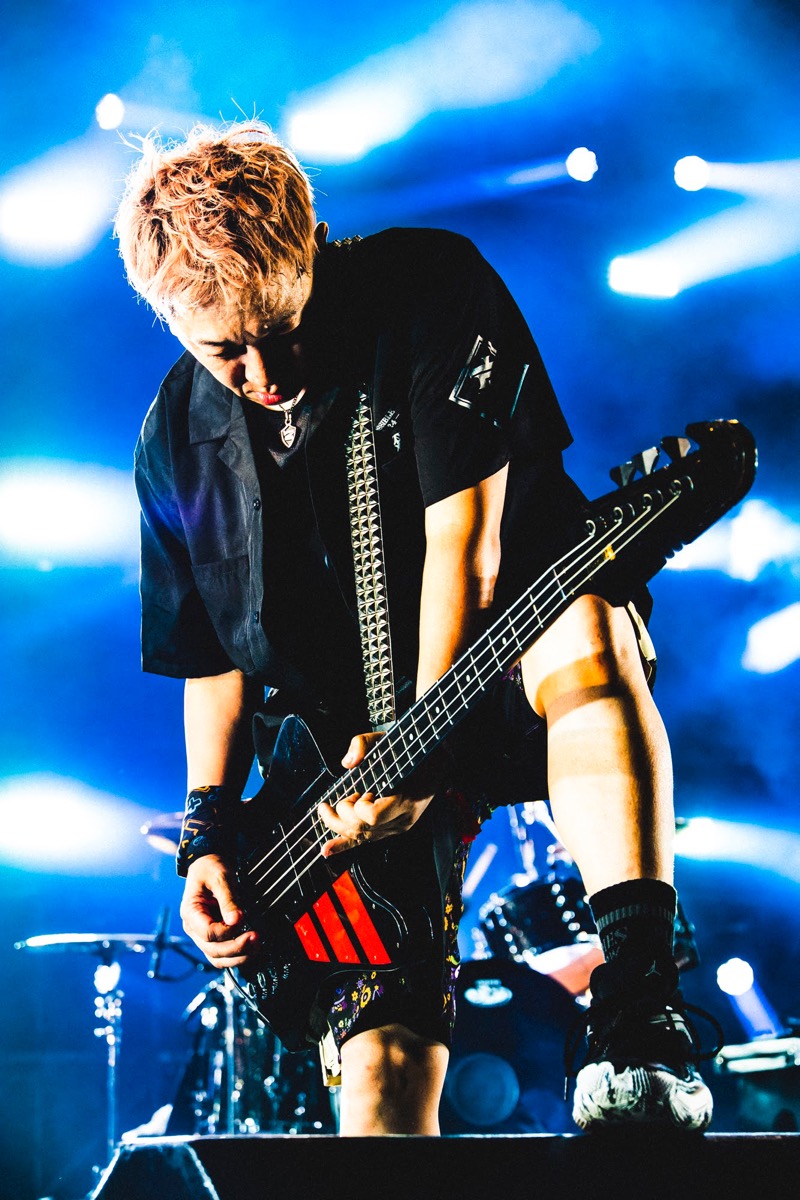 「ほんま、心から全員が楽しい気持ちで帰ってくれたらいいな、と思います。俺らも気合入れてやるから、気合入れて楽しんで帰ってほしいやんか。この瞬間、この空間を大事にしていきたい。ライブの現場でいい波動を伝染していくように、そのためにも全力でみんなで笑って帰りたいと思いますんで、よろしくお願いします」──TAKUMA