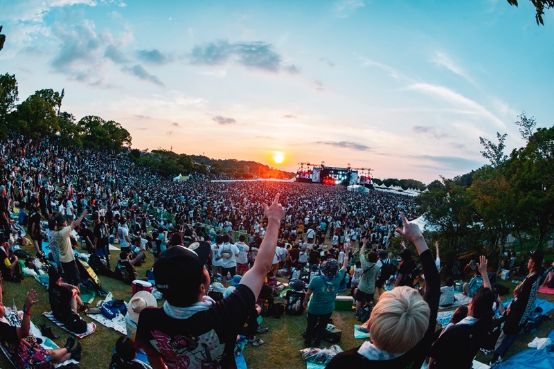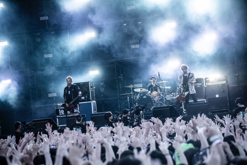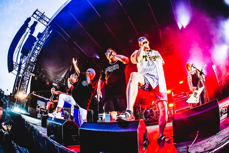 騒ぎの余韻を味わうように「蜃気楼」を聴かせていく10-FEET。中盤ではオーディエンスに歌を任せ、その歌声を10-FEETの3人は浴びて、音楽の力を改めて噛みしめている。本編ラストの「goes on」では、「まだまだ俺らはダサい。カッコ良くなっていこう。一緒にいくぞ」とメッセージ。メンバーとオーディエンスの心意気が、太陽が丘を熱く彩っていった。