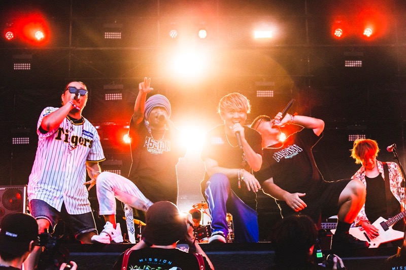 おおっ、これは…! 数ヵ月前、音楽チャンネル『OPEN MIC by JIM BEAM』で、ファンたちの熱望により実現したのが10-FEETと湘南乃風のコラボレーションだった。そのとき共演した曲のひとつが「第ゼロ感 feat. 湘南乃風」で、コーラスや間奏部分に湘南乃風のオリジナルリリックが加わり、その超絶コラボっぷりも大好評だった。それが生で実現である。しかも、あのときの再現ではなく、このステージ限定のスペシャルアレンジ。湘南乃風の存在感と勢い十二分なコーラスが入り込み、曲の持つ勇壮さは倍増。若旦那がタイガースのユニフォームを羽織っているから、TAKUMAのエネルギーも倍増。湘南乃風に合わせてジャンプを決め、力強く声を張り上げるオーディエンスもパワーを増すばかり。ステージ上の事件は、いつだって突然起こるものだが、こんな嬉しい騒ぎならいつだって大歓迎だ。