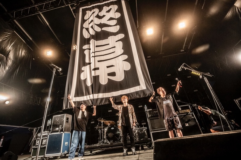 そして、初日すべての演奏を終えて、最後の挨拶のときに“京都のキングオブポップ”改め、“京都のキングオブフォーク”のKOUICHIによる「とんぼ」(長渕剛)からの一本締め。TAKUMAによるタイミングずらしの“エイエイオー”など、やりたい放題。最初もそうだが、最後もやっぱり笑いで持っていく10-FEET。それでこそ、京都大作戦のボスである。