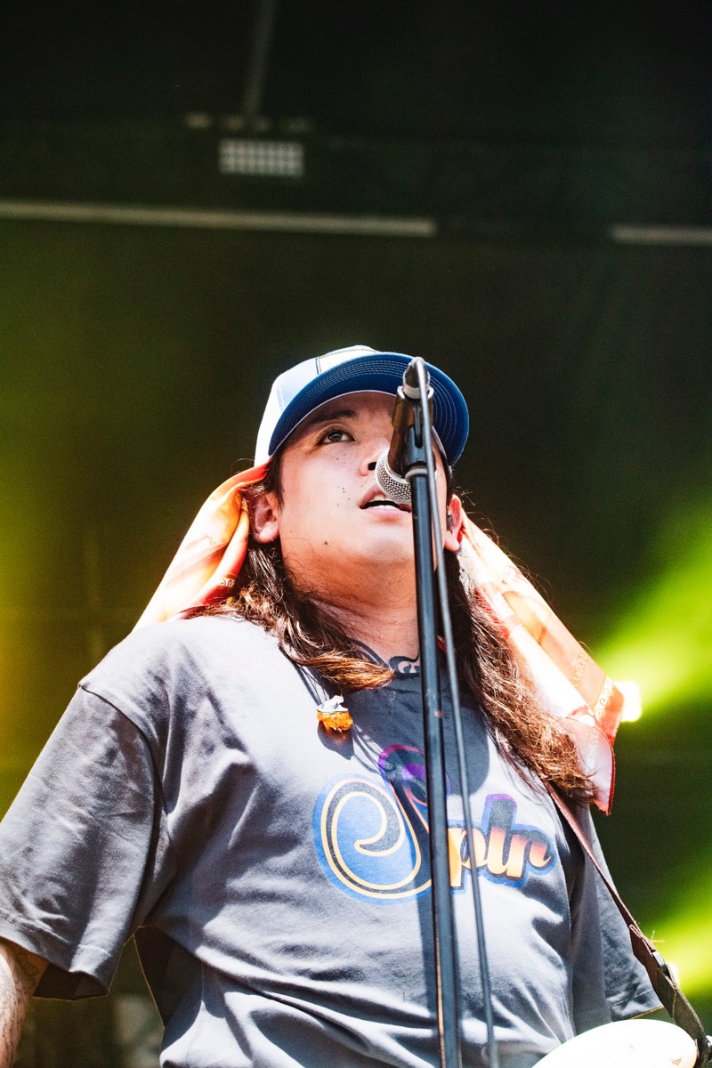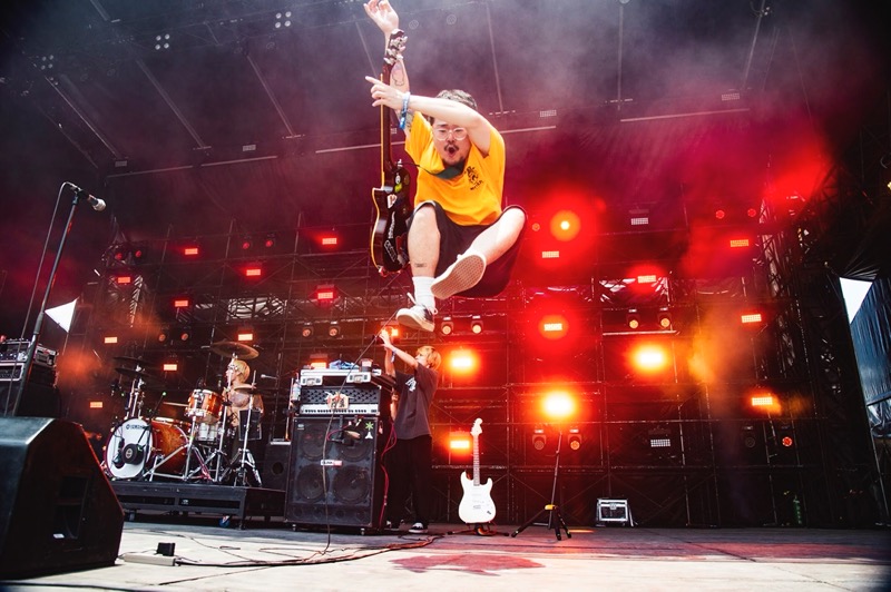 「気持ちいいー!」とダトが正直な気持ちを叫ぶと、俺も同じだとばかりに太陽が丘にクラウドサーフが。これぞ、<翔んで騒いで万々祭゛>だ。京都大作戦2024の2日目の幕開けにふさわしい光景が広がった。ファンキーにヘヴィにグルーヴする「“EN”」を決めた直後、生真面目な表情でダトが語った。