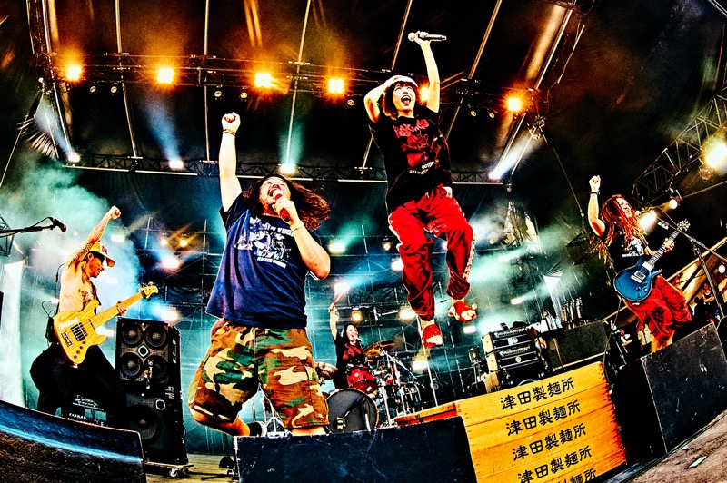 そして共に恋の呪文“麺カタコッテリ!”を決めながら、ラストに炸裂するのは「恋のスペルマ」。コーラスの“スペルマ”を一緒に歌い叫べば、強い愛が太陽が丘を支配する。それを目にしてマキシマム ザ ホルモンは、愛情がにじみ出た爆音をこれでもかと浴びせ続ける。ひもじい思いでいっぱいだった腹ペコは、快楽のサークルモッシュやクラウドサーフを起こし、スペルマ!と至福の表情。