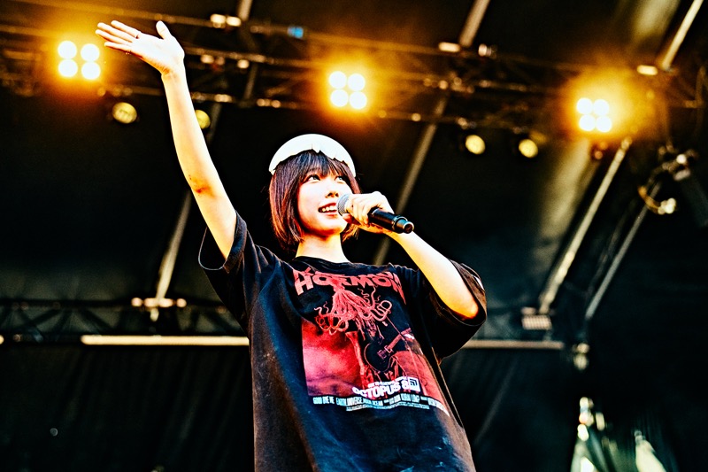 曲が終わって、Mステのタモリさんばりにトークでも楽しもうとするダイスケはんだったが、anoはDANGER x FUTOSHIの帽子が「あっ、これかわいい」といって奪い取って、「バイバーイ!」とさっさとステージ袖へ。あまりの自由さにマキシマム ザ ホルモンのメンバーも笑ってしまうほど。