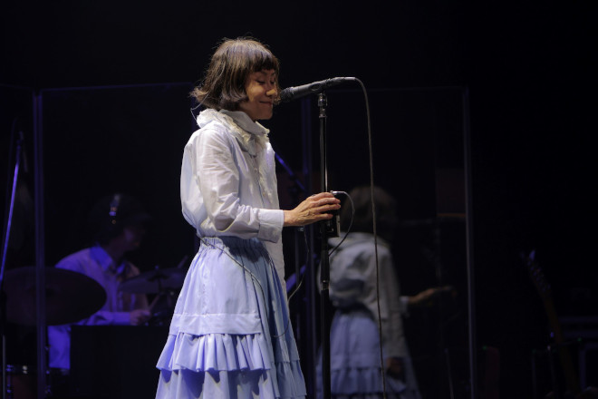 網守が弾く多彩なシンセの音色。松井の生み出すダンサブルなビートがバンド・サウンドのキモになりつつも、伏見のエレキ・ギターも大活躍。こんなにギターが掻き鳴らされる大貫のコンサートは近年珍しく、演奏からロックなテイストも感じられて観客の反応も熱い。