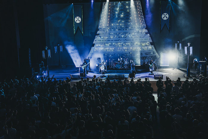 話がやや横道に逸れたが、この横浜公演の序盤、筆者はこうした「名古屋公演と大阪公演の狭間の時期に聞いた話」が目の前の光景と合致していくのを感じていた。もちろんそうしたことについて熟考しているような余裕がないほど、ステージは無駄なくスピーディに進んでいく。序盤の4曲の畳み掛けるような猛攻ぶりはまさに圧巻だったし、変化と緩急に富んだ中盤以降の展開も、さまざまな楽曲たちを破綻なく綺麗に再現するだけではなく、各曲が持つキャラクターをさらに際立たせていく足し算と引き算の巧みさ、さじ加減の絶妙さを感じさせるものだった。そんな中、SAIKIがこのホールツアーについて語る中で口にした「私たちのなかではリベンジ」という言葉、そして背景に映し出された塔を指して「10年の軌跡、証し。みんなで作り上げてきたもの」と述べたことが印象的だった。