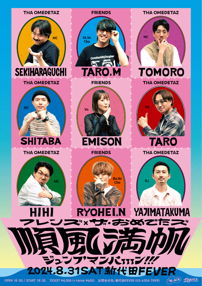 なお、8月31日(土)にはツーマンライブ<フレンズ × ザ・おめでたズ Presents「ジュンプマンパァァァン!!!」>の開催も決定している。