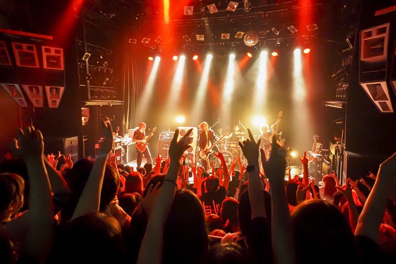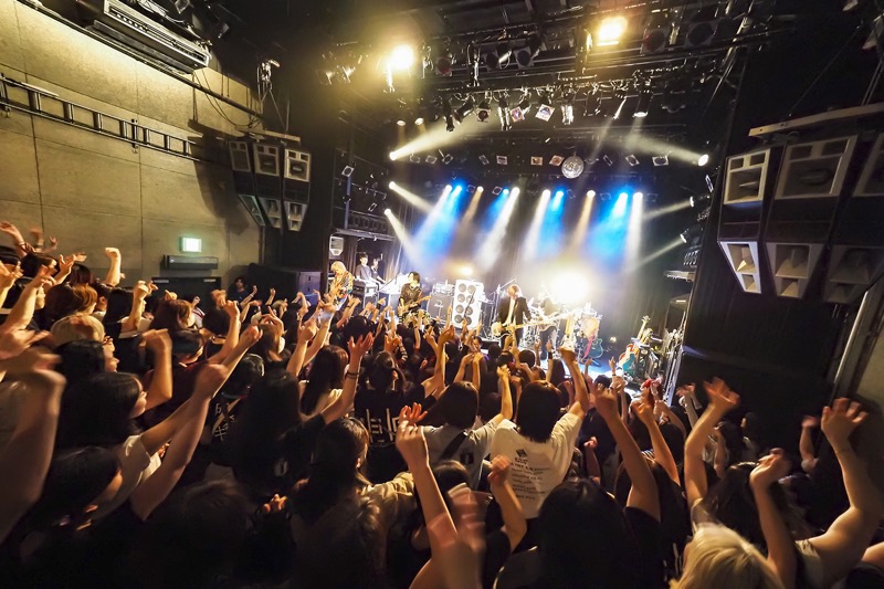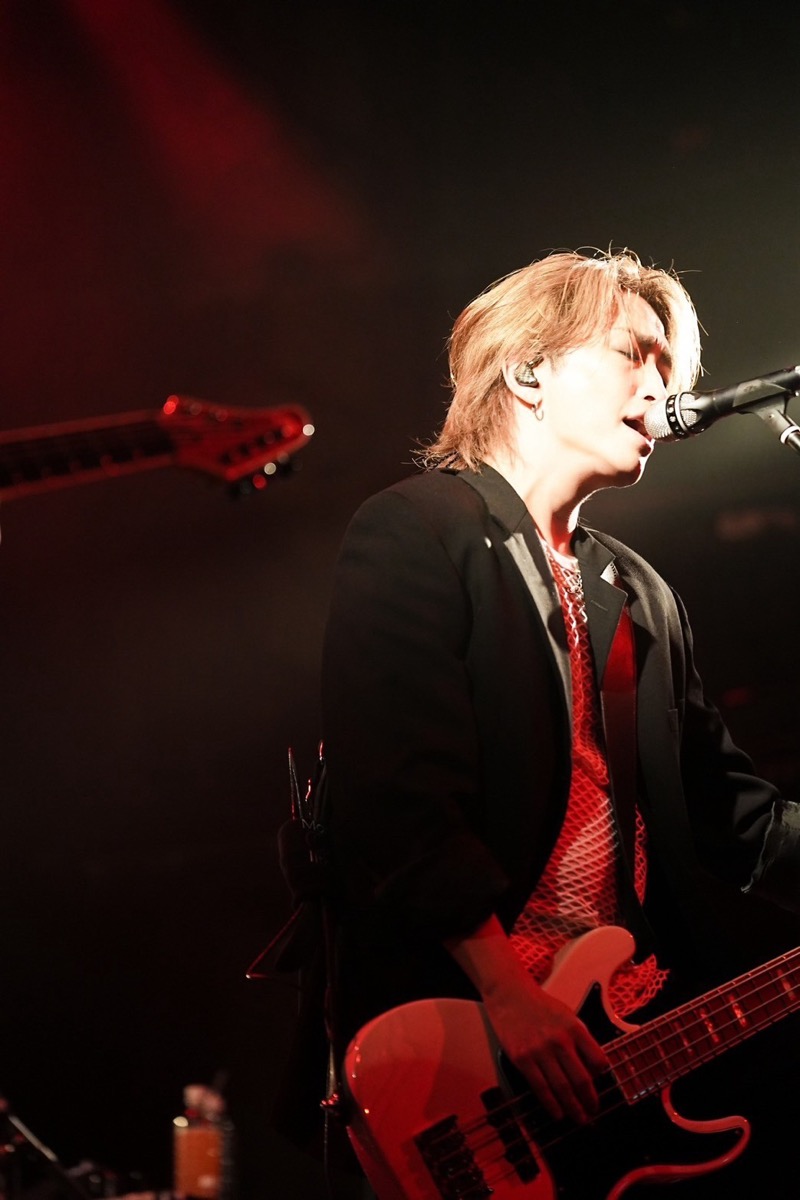 「共犯」に続く「Bluffing」では、真っ赤な照明に照らされて女性視点の歌詞を艶っぽく歌うAKiに体を預けるHIROTOを抱き寄せたり、影丸がアウトロで超絶ドラムソロを披露したりと、このメンバーならではのステージングが展開される。AKiの感傷的なハイトーンボイスが胸を締め付けた「SCREAM」では、加藤がアコギのメランコリックなギターソロで魅了し、眩い光に照らされるAKiが神々しく映ったバラードソング「FATE」では、HIROTOがたっぷり感情を込めたギターソロを披露した。1曲1曲から、ツアーの成果と充実ぶりがうかがえる。