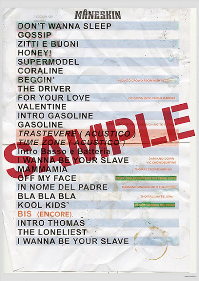 パッケージには、ライヴで大合唱できるように作成された“合唱の手引き”、来日中のメンバーの模様を収めた“カラー・ブックレット”、来日時に話題を呼んだバンド名の漢字表記“ロゴステッカー”、ツアーで実際に使用されていた“セットリスト”のレプリカなどが封入されている。これらすべてはイタリア本国のチームによる監修で作成され、マネスキンからの日本への強い想いが込められているパッケージと言えそうだ。