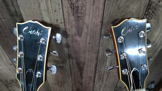 今まで使っていた子はちょっと限界が近づいていたので、新しい子が来たことでやっと修理に出すことができます。ちなみに音もネックの握りも違いがありません(笑)。でもそれが望んでいたことだったので、むしろとても嬉しいです。(どの写真も左が新しい子、右がずっと使ってる子。)