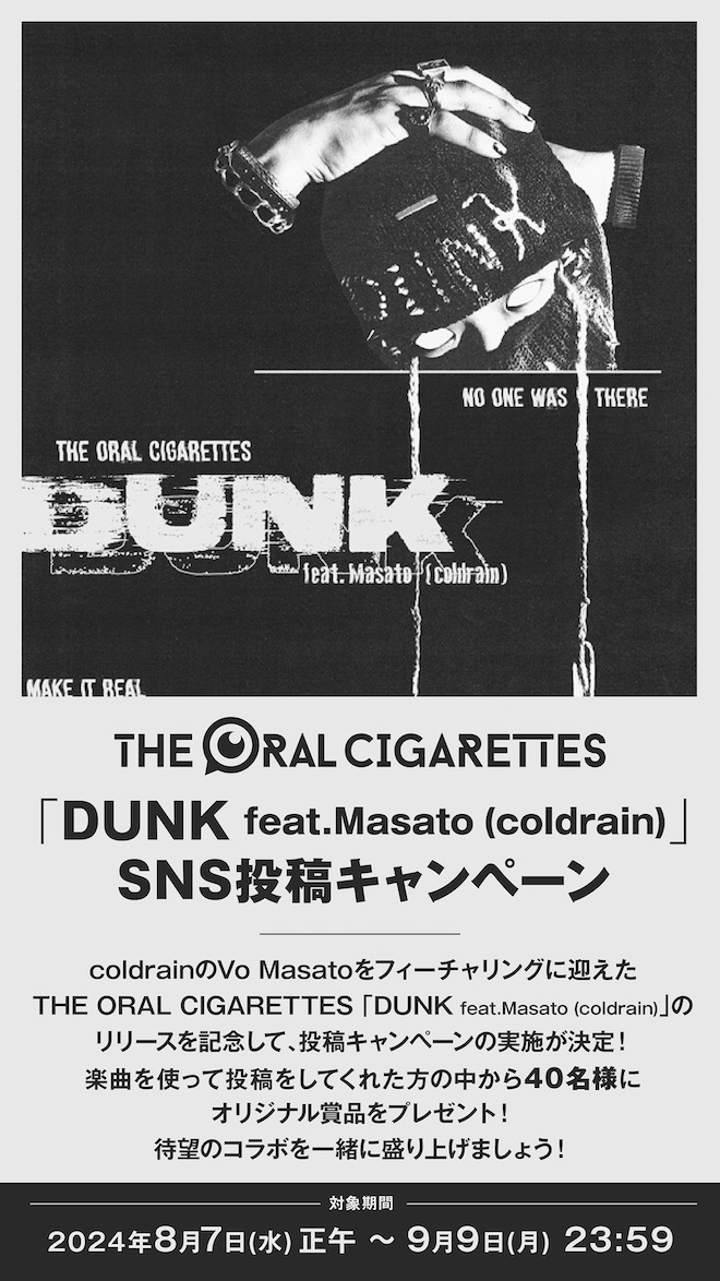 THE ORAL CIGARETTESの新曲「DUNK feat.Masato (coldrain)」が8月7日に配信リリースされた。あわせてMVも公開された。