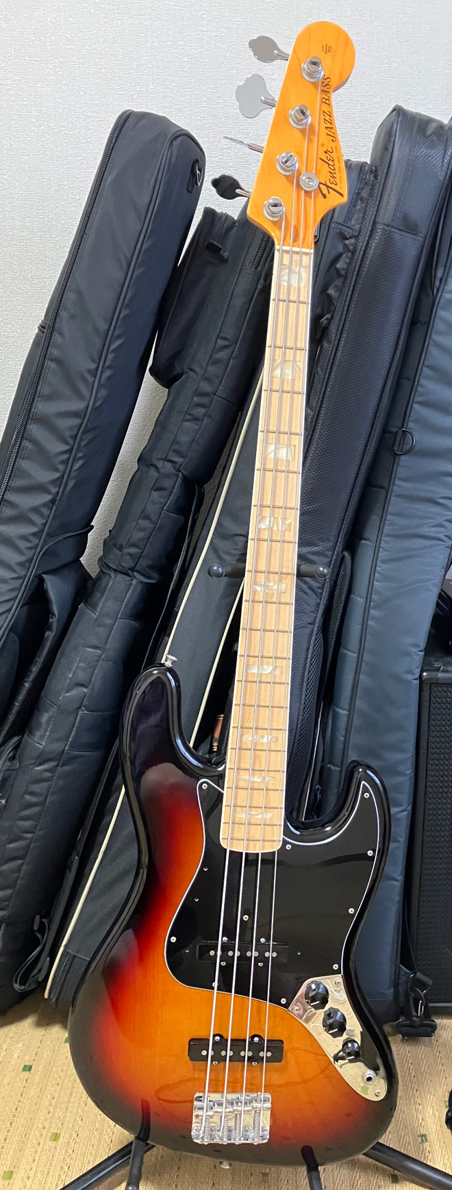 サンバーストボディ、メープルネックにブロックインレイ、ヘッドにはデカデカとJAZZBASSの文字。そうです。私の原体験としてのFenderは70年代仕様でした。