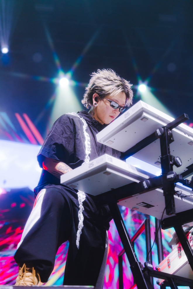 一度メンバーがステージから姿を消すと、入場時に配布された”Glasses”の装着を促すメッセージが前方LEDに表示された。今年の1月〜3月にかけて日本国内でおこなわれた<YOASOBI Zepp Tour 2024 “POP OUT”>でも話題となった3Dグラフィックがここでも登場。音楽ライブでは珍しい演出にオーディエンスからも驚きの声が上がった。