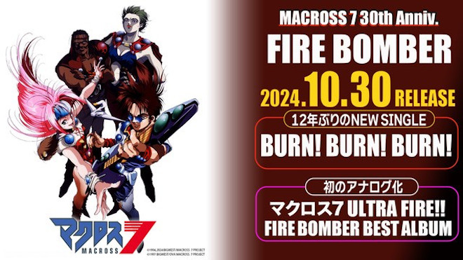 今年30周年を迎える、『マクロス7』劇中に登場するロックバンド「FIRE BOMBER」。主人公であり同バンドのボーカルでもある熱気バサラの誕生日の8月15日、『熱気バサラ誕生日だぜファイアー! presented by マクロスモデラーズ』のSHOWROOMライブ配信にて、12年ぶりとなるシングル「BURN! BURN! BURN!」、さらにベストアルバム『マクロス7 ULTRA FIRE!! FIRE BOMBER BEST ALBUM』のアナログ盤を10月30日にリリースすることが発表された。