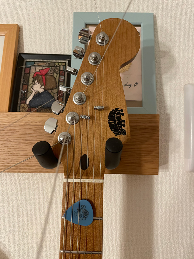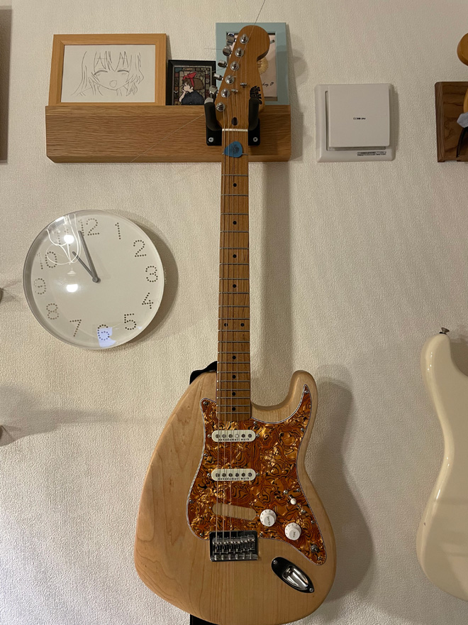 ライブでかき鳴らしたい!しかし、しばらく眺めていたい…。どんな曲が似合うのだろう…。弾いても眺めても、私を満たしてくれるギターに仕上がりました。