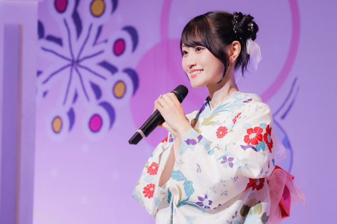 MCを務める森永たまちに呼び込まれ、イベントビジュアルでも使用されたキュートな浴衣姿で小倉がステージに登場。「29歳初イベント初パフォーマンス」と照れ気味の小倉に、会場からは大きな歓声が上がる。誕生日を迎えた感想を問われた小倉は、20代最後で寂しさもあると言いつつも、「これからも年齢にあらがっていくので、来年の唯三十路も楽しみに」と笑顔で会場をわかせた。