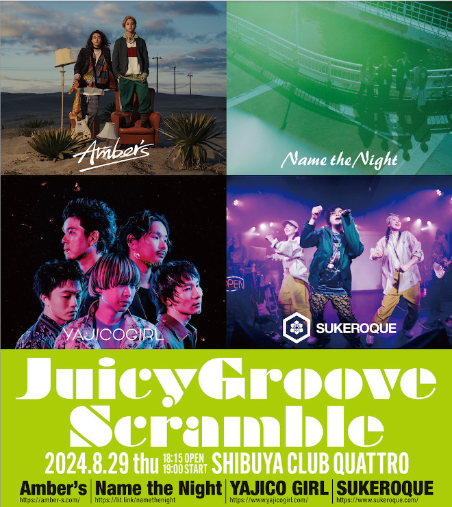 SUKEROQUEが、渋谷ClubQuattroにて主催イベント<Juicy Groove Scramble>を8/29に開催する。