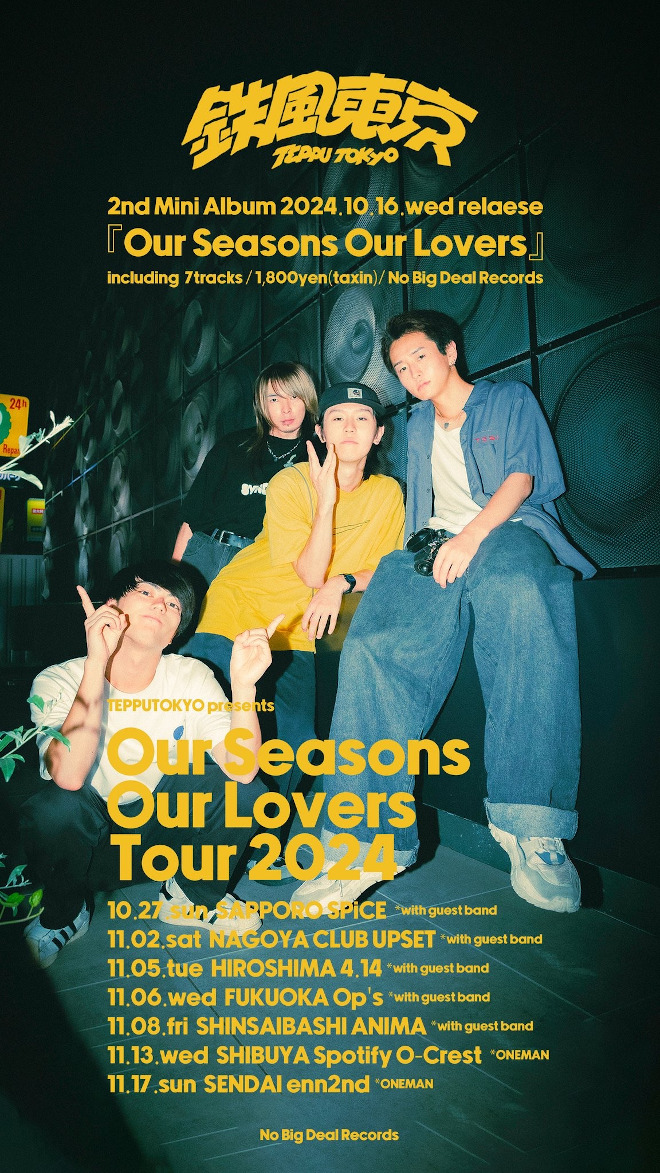 また10月27日(日)札幌SPiCEからリリースツアー<鉄風東京 presents Our Seasons Our Lovers Tour 2024>も開催される。オフィシャル先行が8月22日(木) 23:59まで受付中。