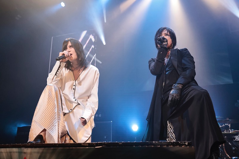 当夜最大のトピックと言えば、二人がお互いのステージに出演し、ツインヴォーカルで各1曲を披露したこと。黒のKIRITO、白の有村竜太朗という衣装の対比も象徴的で、固い握手、熱い抱擁、お立ち台で肩を組みながら笑みを浮かべるシーンも見られた。